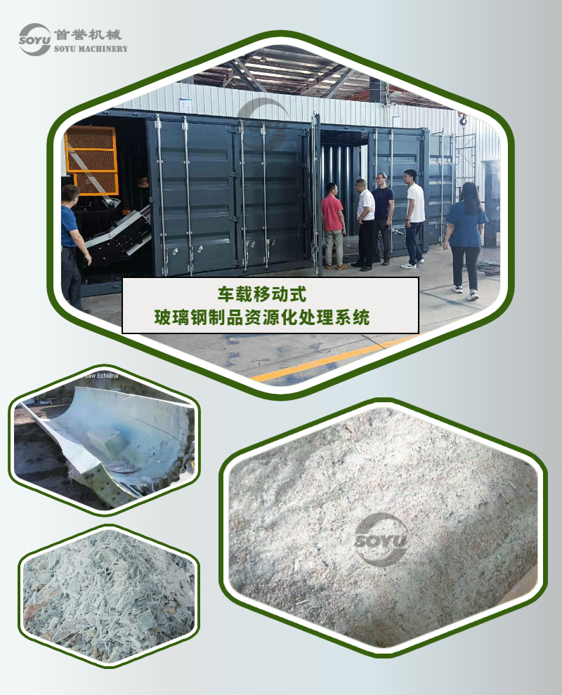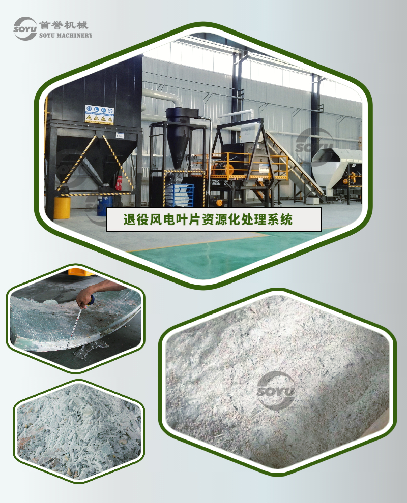 針對退役風電葉片(玻璃鋼)材質(zhì)物料,首譽機械提供專業(yè)的退役風電葉片資源化成套處置系統(tǒng),為批量無害化處置退役風機葉片探索出一條可行性和經(jīng)濟性兼顧的技術(shù)途徑。