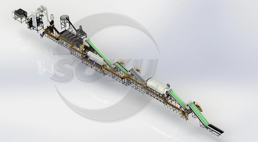 HDPE瓶回收線主要由單軸粉碎機/塑料破碎機、螺旋裝載機、清洗機、標簽去除機、立式脫水機、干燥機等設備組成。它適用于處理PET瓶。材料將通過去除標簽、破碎、清洗、脫水和干燥進行處理。最終輸出的濕度可以在2%以內。整個生產線操作方便,效率高,能耗低。