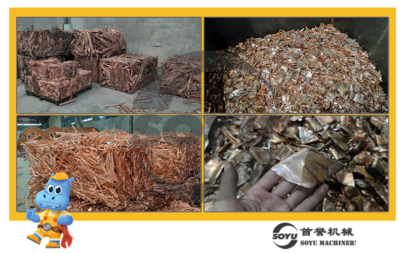 針對光亮銅等物料,首譽提供專業的破碎分選打包系統,產量可達到3-10噸/小時,適用于處理光亮銅(紫銅管、銅線)等。